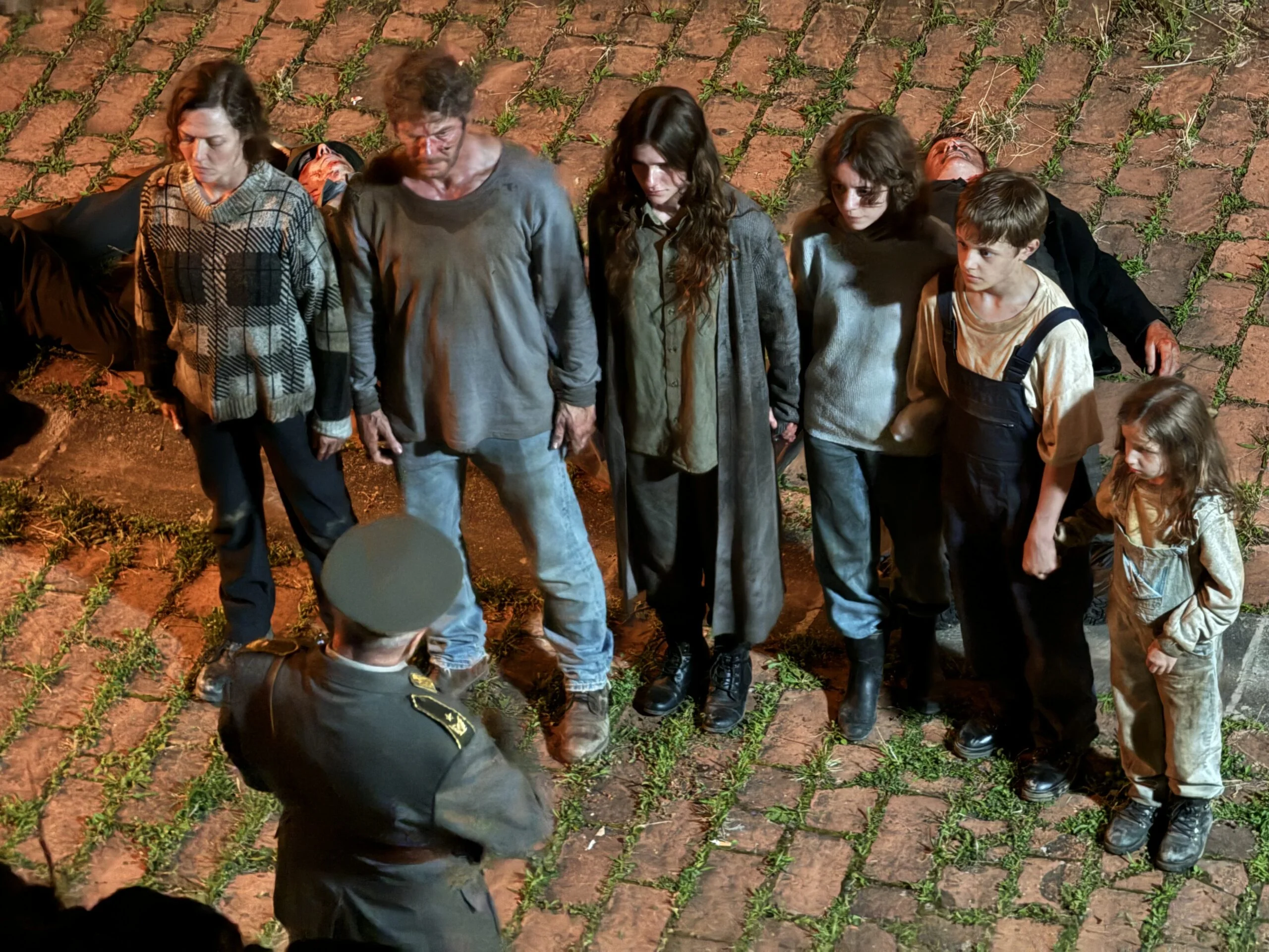 The set gathered young Marijan (Will Gober), his father Hinko (Sam Hazeldine), mother Marija (Camilla Rutherford), and sisters Nena (Isabella Dempster), Gabrijela (Florence Bensberg), and Helena (Antea Huljev Žuvan). Joining them were the characters Uroš, Miloš, and Željko. Each sequence added a heavier tone, with the pale, frightened faces of the children and their mother evoking deep empathy from the viewer.
